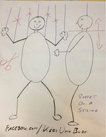 Feel like a puppet on a string. Now start cutting all strings except for the one pulling your crown point up. Your crown point pushes up, everything else drops down. Everything above your neck goes towards heaven, everything below drops to earth.