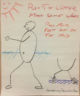 Imagine to stand in a pool and feel how you need to push your belly forward in order to move. Feel the resistance, then feel the pull as you swing back. Then imagine to stand in a big puddle of mud and feel how you need to pull your feet up and out when you make a step. Then feel how your heel pushes back into the mud as you put your foot back down.